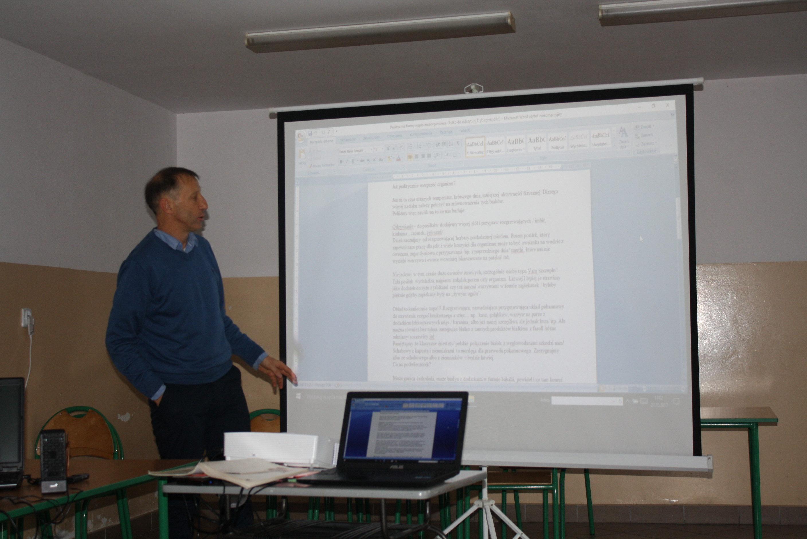 Marek Dudek wprowadził wszystkich w temat spotkania zimowym spacerem, pełnym urokliwych widoków, iskrzącego śniegu i zimowych blasków czyli jednym z urokliwych wielu filmów w jego realizacji. Po tej swoistej aklimatyzacji przeszedł do sedna wykładu – omówił sposoby na wzmocnienie oporności, zarówno dla dzieci jak i dorosłych. Mówił o dobroczynnym wpływie ziół, przypraw, herbatek.