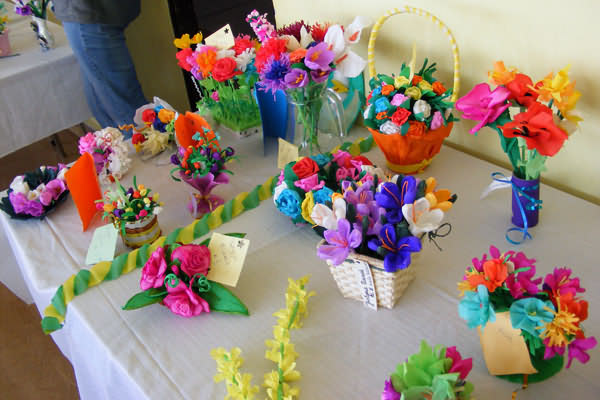Urząd Gminy Limanowa - Wydział Kultury, Promocji, Turystyki i Sportu oraz Koło Gospodyń Wiejskich w Pisarzowej w miesiącu marcu zorganizowało konkurs pn. "Pisarskie kwiaty z bibuły".