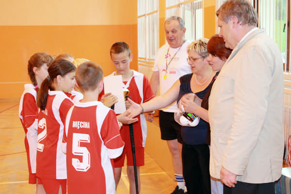 Wręczenia pucharów, nagród i dyplomów drużynom uczestniczącym w rozgrywkach dokonali: Maria Kądziołka - Prezes UKS "GUMISIE" Stara Wieś, Teresa Piwowar- pracownik Międzyszkolnego Ośrodka Sportowego Powiatu Limanowskiego, Jacenty Musiał - Kierownik Wydziału KPTiS w Urzędzie Gminy Limanowa oraz Sędzia Zawodów - Józef Smęda.