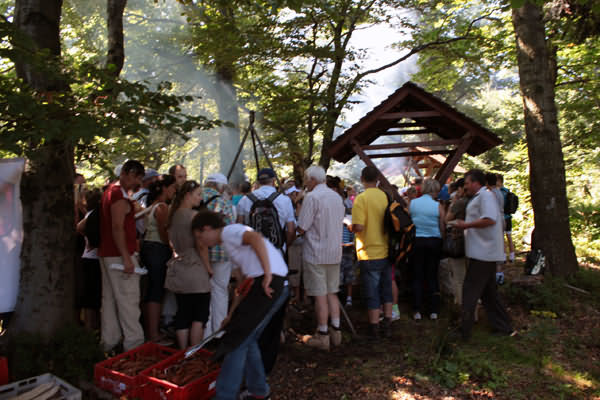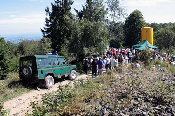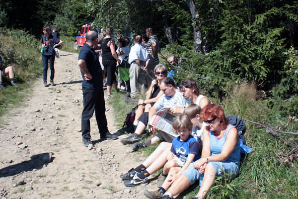 pierwszych, którzy pieszo przybyli na górę był Wójt Gminy Limanowa - Władysław Pazdan z żoną, docierając od strony Pisarzowej, gdzie mieszkają. Kolejno na szczycie pojawiały się poszczególne mniejsze i większe grupy turystów. Dla wielu z nich była to już kolejna dziewiąta wędrówka organizowana w ramach cyklu pieszych wędrówek "Odkryj Beskid Wyspowy".