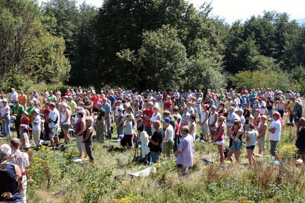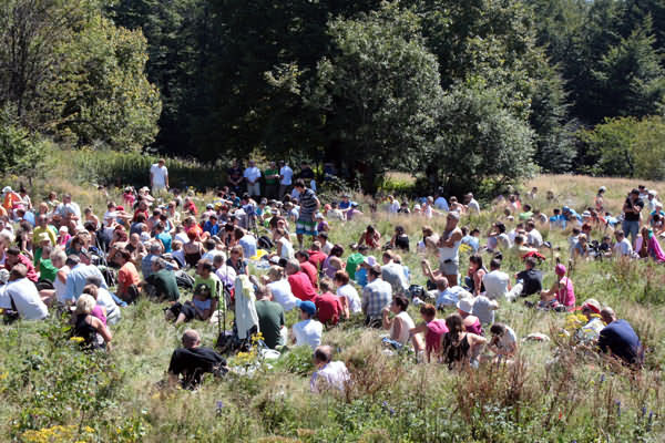Tradycyjnie po wyjściu na szczyt turyści otrzymywali pamiątkowe okolicznościowe plakietki, a o godz. 12.00 rozpoczęła się msza św., którą odprawił ks. Piotr Witowski z Bazyliki Matki Boskiej Bolesnej w Limanowej. W homilii mówił On o wielkiej roli gór dla Boga, Jezusa oraz człowieka wspominając o zamiłowaniu do gór Papieża - Jana Pawła II.