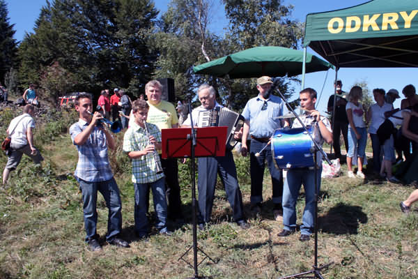 Turyści na szczycie mogli posilić się kiełbaską z grilla ufundowaną przez organizatorów. Oprawę muzyczną turystycznej imprezy zapewnił Zespół "Niebiescy Chłopcy" ze Starej Wsi.