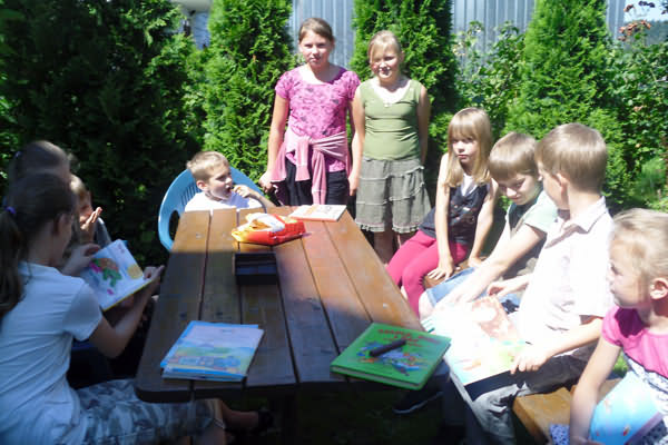 Z kolei dnia 16 sierpnia odbyło się w Bibliotece "Czytanie na zawołanie" - czyli głośne czytanie utworów literatury dziecięcej wybranych na życzenie młodych czytelników. Każdy z biorących udział wybrał sobie dowolną bajkę, aby mógł głośno i ze zrozumieniem przeczytać tekst.