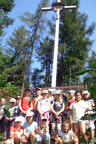Mimo stromego i kamienistego podejścia dotarliśmy do ramienia Łysej Góry, gdzie na wysokości 730 m znajduje się tzw. Stary Krzyż. Po krótkim odpoczynku i rozmowach o Łysej Górze wyruszyliśmy dalej szlakiem żółtym na Miejską Górę wznosząca się ponad miastem Limanowa na wys. 716 m n.p.m. Często na swojej drodze spotykaliśmy wędrujących turystów. Największą atrakcją na Miejskiej Górze jest Krzyż Milenijny o wys. 37 m upamiętniający 2000-lecie Chrześcijaństwa.