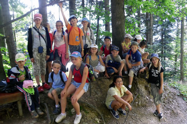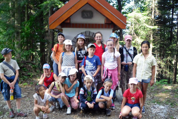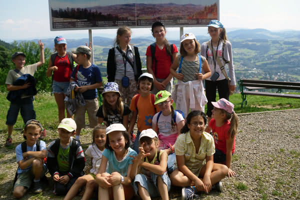 Wycieczka jest jednym z najmilszych momentów w życiu młodych czytelników Biblioteki. Przy słonecznej pogodzie naszą 20 osobowa grupa wyjechała busem 18 sierpnia o godz. 10.15 na skraj lasu Miejskiej Góry i rozpoczęła się nasza piesza wyprawa żółtym szlakiem na szczyt Łysej Góry. Po drodze zatrzymaliśmy się przed starym kamieniołomem, z którego brany był kamień na budowę Kościoła w Limanowej.