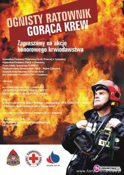 O samym biegu można przeczytać w artykule http://limanowa.in/wy-tu-piszecie;koszulka-rogelli-gratis-dla-pierwszych-150-osob,5912.html oraz na stronie Organizatora: http://www.forrest-limanowa.pl. W tym samym czasie na mecie (lokalizacja j.w.) w godzinach 9:30 - 17:00 przeprowadzana będzie zbiórka pieniędzy na zagrożony likwidacją Ośrodek Rehabilitacyjny w Tymbarku, o którym pisaliśmy pod koniec lipca: http://www.limanowa.in/wydarzenia,4891.html oraz akcja oddawania krwi: http://www.kppsplimanowa.pl/e/84,ognisty_ratownik_-_goraca_krew.