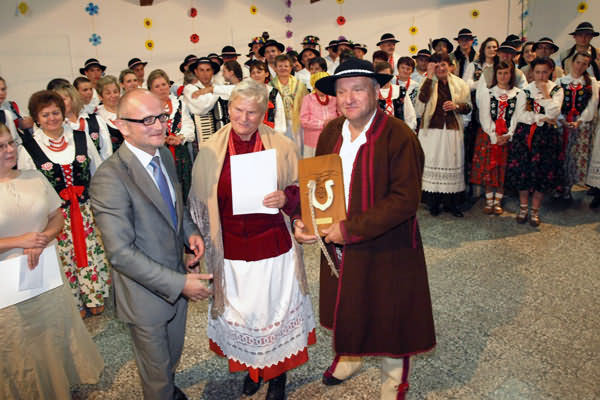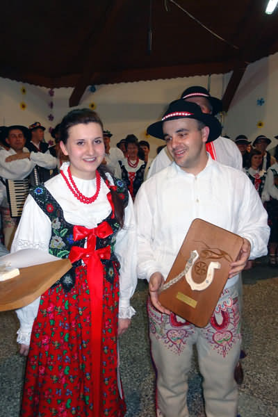 Pamiątkowe "Beskidzkie Podkóweczki" i nagrody na zakończenie Festiwalu wręczyli zespołom Wójt Gminy Dobra Benedykt Węgrzyn, Dyrektor GOK w Dobrej Joanna Stokłosa i Piotr Lulek.