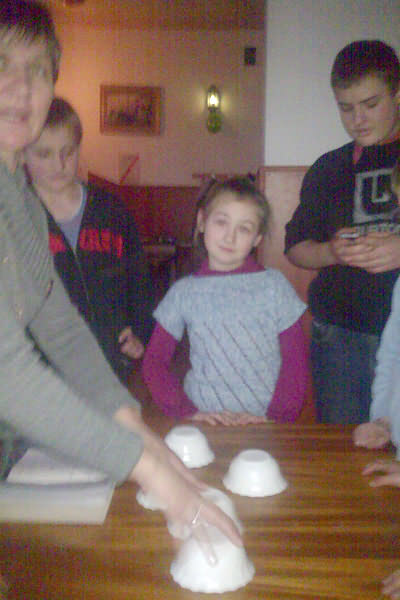 W ramach specjalnego andrzejkowego programu przygotowanego dla dzieci i młodzieży w WKK w Kisielówce odbyła się m.in. zabawa taneczna połączona z konkursami oraz wróżby. Podstawową wróżbą-zabawą, bez której andrzejki nie mogły się odbyć było lanie wosku. Ponadto wróżono … z butów oraz kości do gry.
