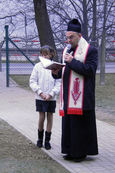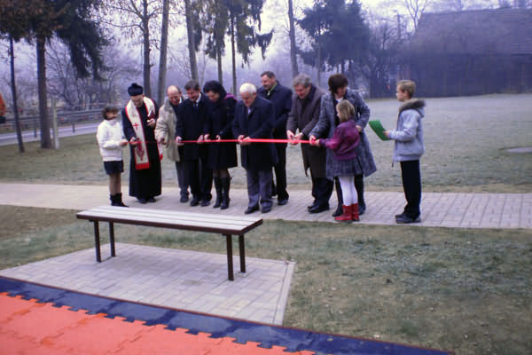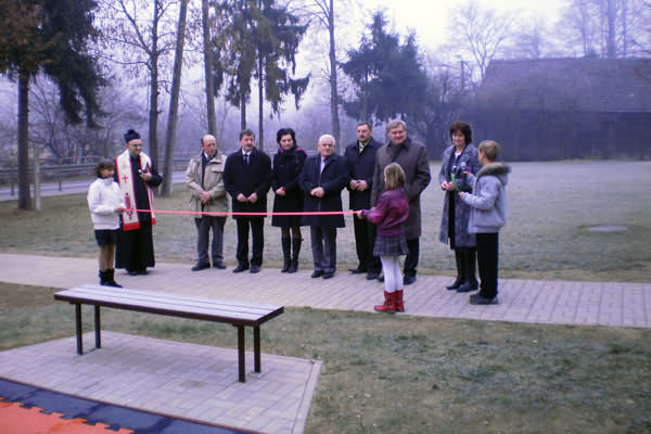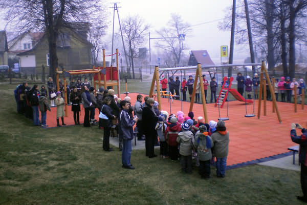Po symbolicznym przecięciu wstęgi przez zaproszonych gości Ksiądz Proboszcz pobłogosławił plac i życzył aby Bóg miał pod opieką wszystkie bawiące się na nim dzieci. Na koniec Pan Wójt życzył dzieciom bezpiecznych i radosnych zabaw na placu. Uroczystość ta najbardziej ucieszyła dzieci, które mogą już oficjalnie korzystać z nowego placu zabaw.