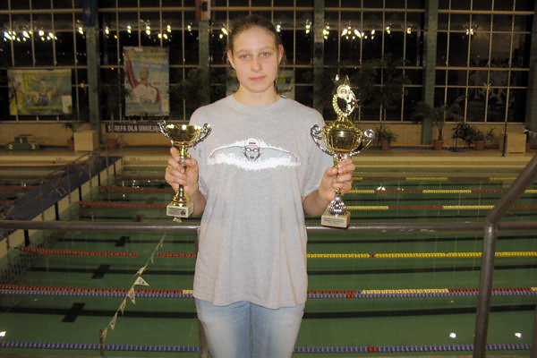 Tak udane starty pozwoliły Wioli na zdobycie tytułu i pucharu najlepszej zawodniczki 14 letniej. Jest to wielki sukces bo wygrała z zawodniczkami trenującymi na co dzień w szkołach mistrzostwa sportowego. W zawodach brała udział również Paulina Widomska. Oto czasy i miejsca zawodniczek:
