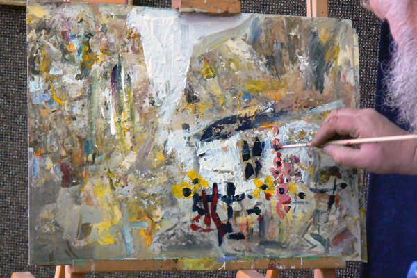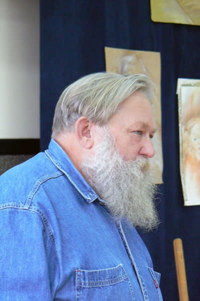 Na początku z artystą spotkały się dzieci z oddziału przedszkolnego, dla których Pan Zygmunt ozdobił salę barwnymi kwiatami malowanymi na ścianie. Dzieci pilnie śledziły