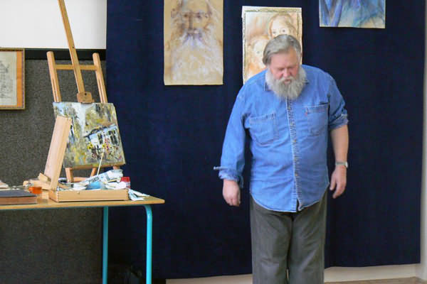 Od godziny 13-tej zaplanowany był krótki wykład dla zainteresowanych mieszkańców oraz nauczycieli i pracowników szkoły. Dotyczył on działalności arian w tutejszej okolicy, historii ikonografii Matki Boskiej Królowej Polski, przesądów i zabobonów opisanych w tekstach źródłowych. Pan Kłosowski przedstawił także krótko tradycje malarskie swojej rodziny.