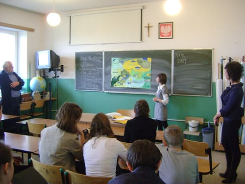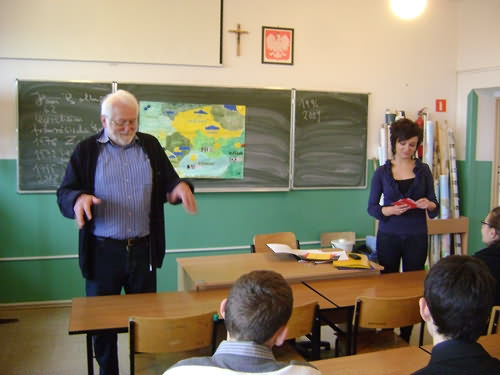 naszej szkoły Hansa Bollingera z Kraju Saary, który 1 grudnia 2011r. wspólnie z germanistką Małgorzata Krawczyk przeprowadził dwugodzinne zajęcia. Uczestniczyło w nich 30 uczniów, którzy mają najlepsze oceny z j. niemieckiego oraz Dyrekcja szkoły.