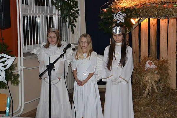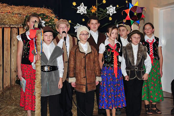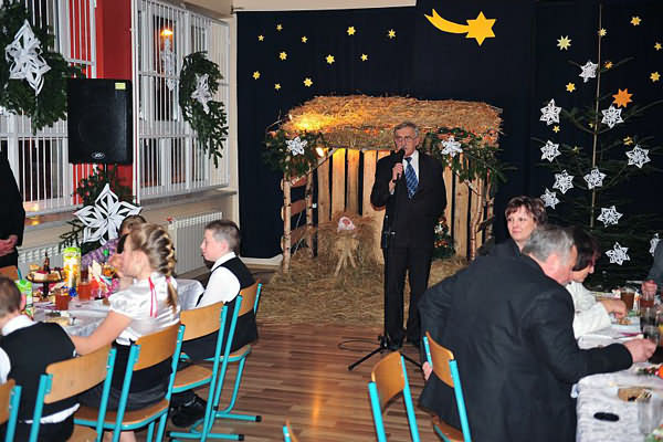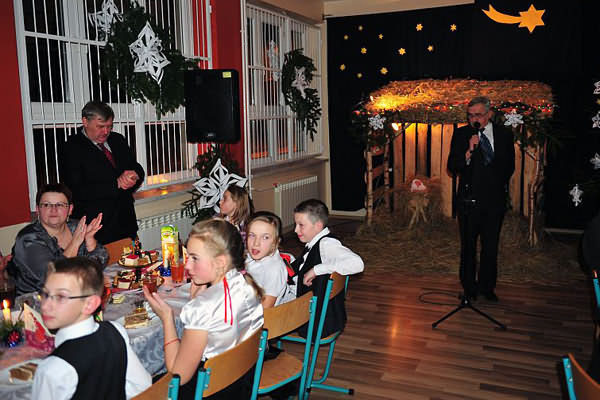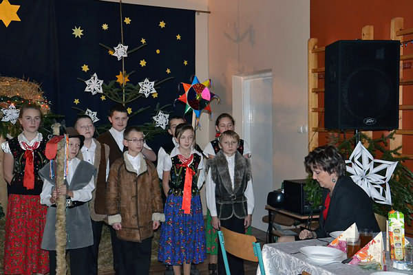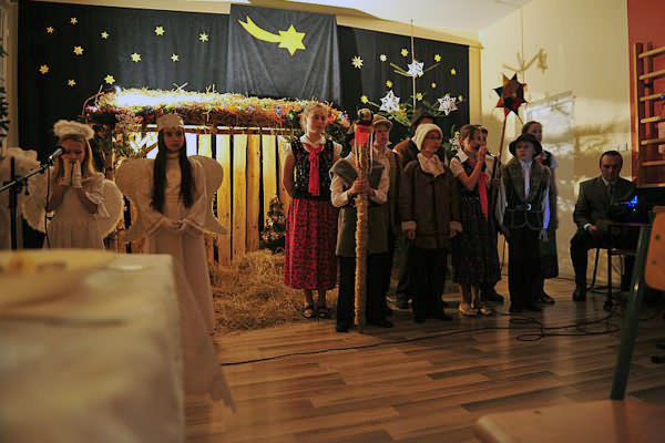 W niezwykłej scenografii, przy stajence betlejemskiej uczniowie przedstawili wieczór kolędniczy, zapraszając do wspólnego śpiewania kolęd. Otoczeni piękną dekoracją, przy dźwiękach muzyki wszyscy mogli na nowo przeżyć historię Narodzenia Pana Jezusa.
