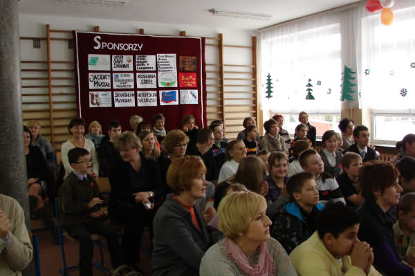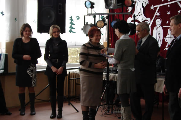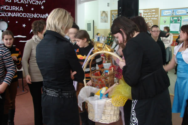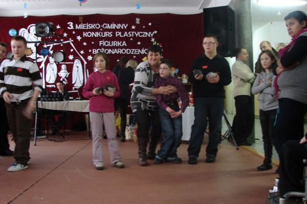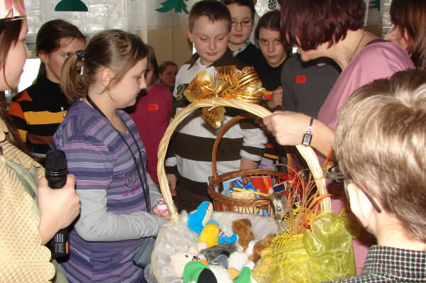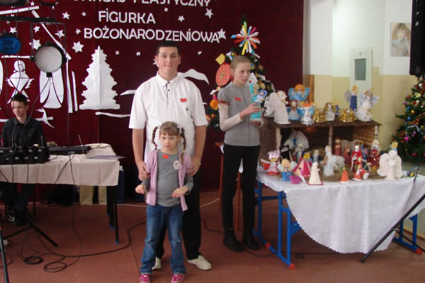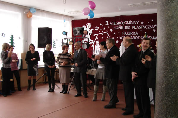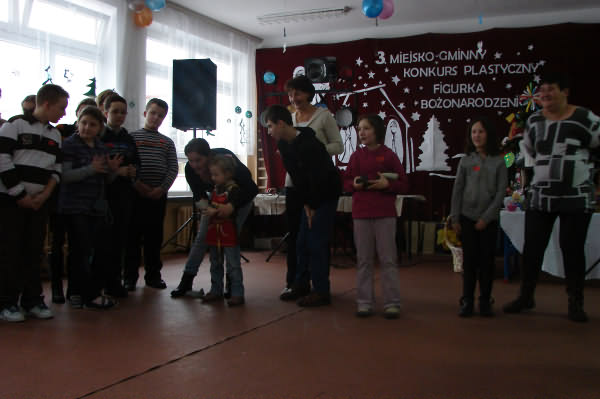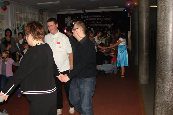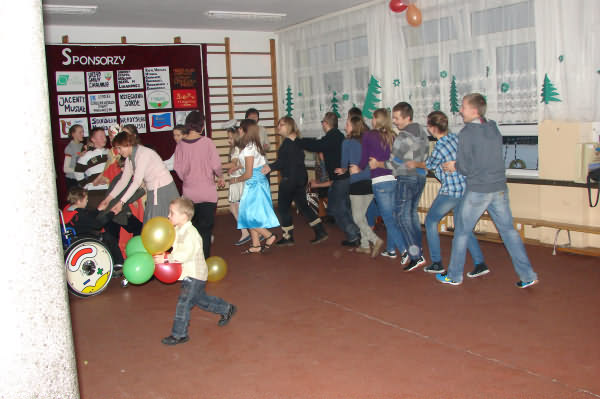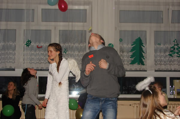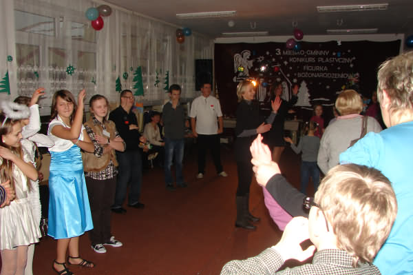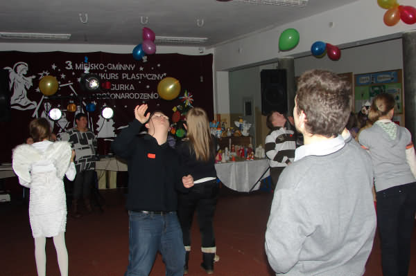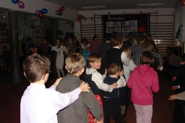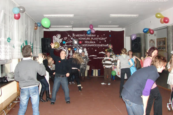 Dla uczestników konkursu ogromne znaczenie miał zorganizowany bal karnawałowy, w organizacji którego pomagali następujący uczniowie naszej szkoły: Izabela Nowak, Justyna Sojka, Ewelina Pytko, Aneta Dudek, Piotr Matląg, Dominik Lizak, Wojciech Musiał. Natomiast uczennice: Paulina Woźniak, Monika Wojcieszak, Monika Matląg, Monika Gąsiorek i Joanna Giza, przebrane za postacie związane z tematyką Świąt Bożego Narodzenia przygotowały i przeprowadziły ciekawe konkursy, w których dzieci chętnie brały udział. Największą frajdę sprawiły im: rzuty do celu, zabawa "Raz, dwa, trzy, król patrzy", dmuchanie piórek, zabawy z balonami. Za udział w konkursach dzieci otrzymywały drobne prezenty. Podczas balu nie zabrakło również dobrej muzyki, którą zapewnił zespół R.M. Sound. Dzieci tańczyły w rytm znanych piosenek m.in. "Makarena", "Kaczuszki, "Jedzie pociąg". Wir dobrej zabawy porwał nie tylko młodszych uczestników ale również ich opiekunów i organizatorów. Nie było czasu na nudę, wszyscy przenieśli się w "magiczny świat dobrej zabawy". Warto również wspomnieć o smacznym poczęstunku, który był dopełnieniem całego wydarzenia.