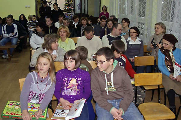 Po rozstrzygnięciu konkursu i wręczeniu nagród był czas na występy naszych najmłodszych i wspólne kolędowanie. Na koniec prawdziwy rarytas: występ dorosłych kolędników z bardzo rzadko obecnie prezentowaną szopką lalkową. Ta konkretna szopka i występujące w niej kukiełki mają ponad 100 lat!