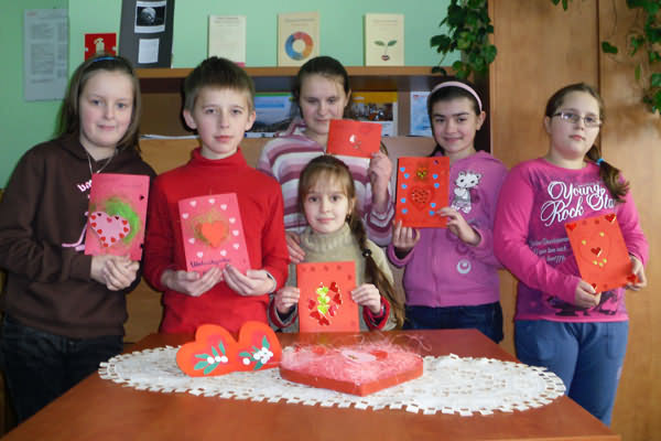 możemy okazać, wysyłając jej kartkę walentynkową z czułym wyznaniem. Podczas spotkania dzieci zapoznały się z tradycją tego święta oraz wysłuchały historii Świętego Walentego. Z udostępnionych materiałów wykonały piękne kolorowe laurki, do których wpisały wierszyki. Bardzo pomocną przy wyborze życzeń okazała się książeczka Beaty Kołodziej - "Życzenia na różne okazje", wydana przez Wydawnictwo Święty Paweł. Spotkanie zakończyło się słodkim poczęstunkiem oraz zrobieniem wspólnej fotografii.