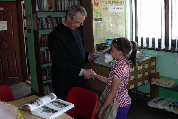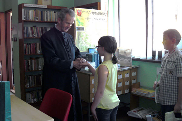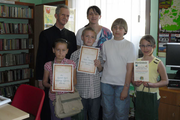W ciepłej, rodzinnej atmosferze zaproszony specjalnie na tą uroczystość gość, a był nim ksiądz Stanisław Pietrzak, wręczył nagrody i dyplomy najlepszym czytelnikom: Wojtkowi Oleksemu i Agnieszce Wójcik. Ważne jest, żeby dzieci od najmłodszych lat miały świadomość, że czytanie książek nie musi być przymusem, ale powinno przede wszystkim sprawiać radość i przyjemność. Doceniając i chcąc podtrzymać zapał czytelniczy zwłaszcza wśród najmłodszych zapraszamy wszystkich do naszej biblioteki.