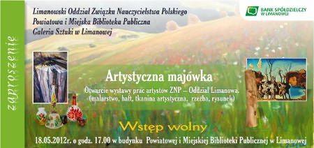Wystawa nosi tytuł "Artystyczna Majówka". Przygotował ją Związek Nauczycielstwa Polskiego Sekcja Emerytów i Rencistów w Limanowej przy współudziale Miejskiej Biblioteki Publicznej w Limanowej.
