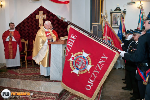 Proboszcza parafii Kanina i księży ks.Piotra Mamaka ks. Rafała Więcława W czasie mszy został przez ks .Władysława Kuliga poświęcony sztandar dla Ochotniczej Straży Pożarnej w Wysokiem ufundowany przez społeczność lokalną.