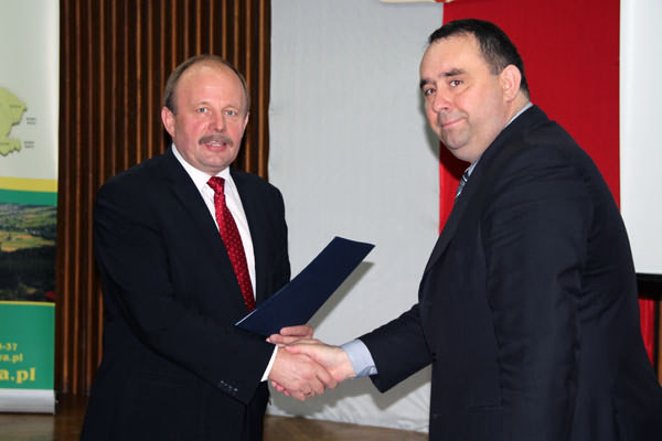 Członek Zarządu Województwa Małopolskiego Stanisław Sorys na Sali Konferencyjnej Urzędu Gminy Limanowa dokonał wręczenia 8 Gminom, z