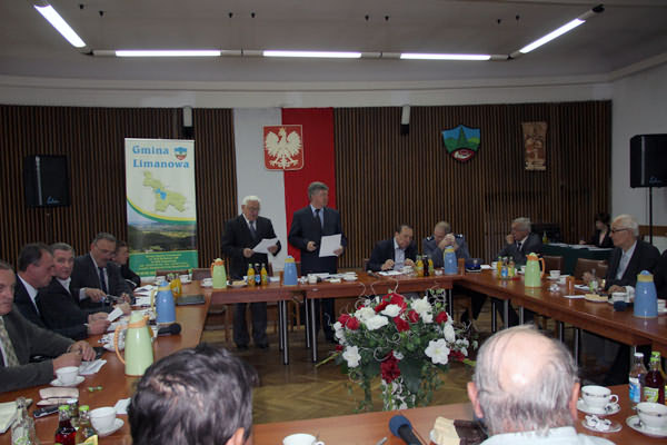 W dniu 9 maja br. w sali konferencyjnej Urzędu Gminy Limanowa odbyła się XIV sesja Rady Gminy Limanowa. W obradach sesji, oprócz radnych, udział wzięli kierownicy gminnych jednostek organizacyjnych, kierownicy wydziałów Urzędu Gminy, sołtysi z terenu gminy, a także zaproszeni goście: Tadeusz Stachak - Zastępca Komendanta Powiatowego Policji w Limanowej oraz Jacenty Musiał i Marcin Matras - Radni Powiatu