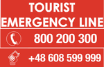 Turyści mogą skorzystać z bezpłatnej infolinii 800 200 300 dla telefonów stacjonarnych, a także z płatnego (wg cenników operatorów sieci) numeru telefonu komórkowego: +48 608 599 999.