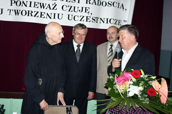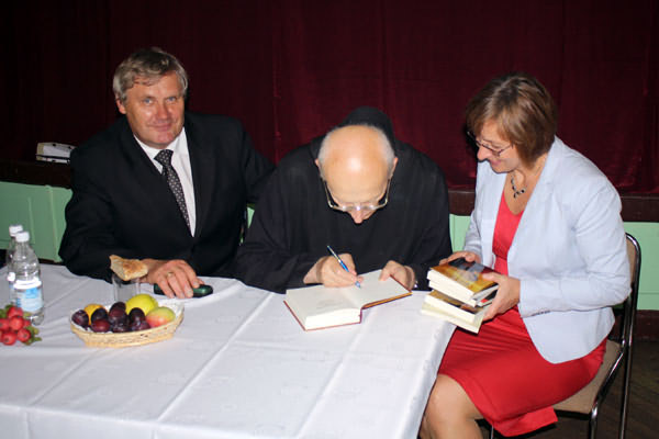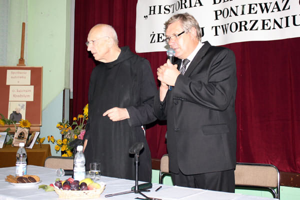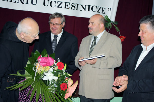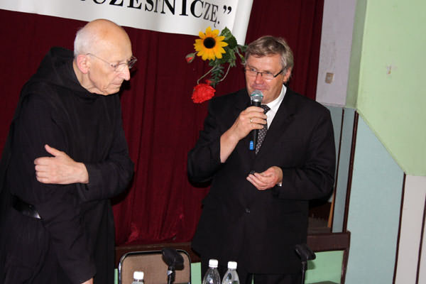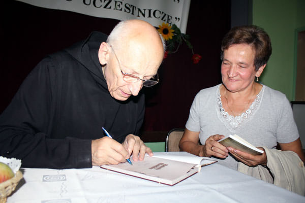 Na spotkanie przybyli m. im. Przewodniczący Rady Gminy Limanowa - Józef Oleksy, Sekretarz Gminy - Marek Ziaja, Dyrektor MBP w Limanowej - Joanna Michalik oraz Instruktor PBP Maria Kawula, Dyrektor Szkoły Podstawowej w Kłodnem - Roman Ciesielczyk, Sołtys Starej Wsi- Mieczysław Bulanda, Radny - Józef Mąka i Radny Siekierczyny - Stefan Hutek, mieszkańcy Starej Wsi oraz liczni przyjezdni goście z Ziemi Limanowskiej. Na zakończenie uroczystości słowa podziękowania skierowali do Ojca Leona przedstawiciele władz gminy - Józef Oleksy oraz Marek Ziaja. Odczytano także list Wójta, Władysława Pazdana, który wyrażał uznanie za całokształt posługi kapłańskiej, którą mnich dzieli się z innymi. Pod koniec można było nabyć książki autorstwa Ojca Knabita wraz z autografem. Benedyktyn podpisując książki, z każdym chwilkę porozmawiał oraz błogosławił. Wszyscy słuchacze byli pod ogromnym wrażeniem osoby Ojca Leona, jego życiowych rad, dystansu, z jakim podchodzi do swojej własnej osoby oraz pogody ducha i optymizmu. Ten ubogi zakonnik jest najlepszym przykładem na to, iż człowiek jest wielki nie przez to co ma, lecz przez to kim jest, nie przez to co posiada, lecz przez to, czym dzieli się z innymi. Uroczystość przebiegała we wspaniałej, radosnej i rodzinnej atmosferze, przy pełnej sali widowni w różnym wieku i trwała aż do późnych godzin wieczornych.