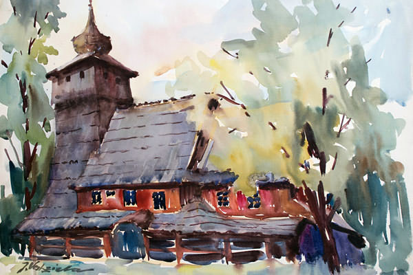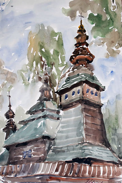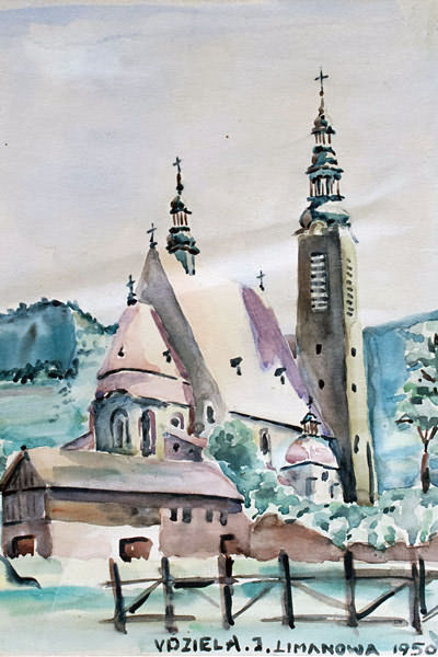 Jerzy Udziela. Architekt, malarz, akwarelista. W czasie II wojny światowej działacz konspiracyjny. Jego rodzina wywodzi się z okolic Kamienicy w powiecie limanowskim, skąd jego przodkowie przenieśli się w XIX wieku do Starego Sącza. Dziadek Jerzego, Seweryn, (znany etnograf) zamieszkał w Krakowie. Przez całe życie zbierał zabytki kultury materialnej i artystycznej ludu polskiego, które zgromadził w pierwszym na ziemiach polskich Muzeum Etnograficznym w Krakowie. Ojciec Jerzego, również Seweryn, był dyrektorem gimnazjum w Jarocinie, później w Myślenicach, gdzie w czasach hitlerowskiej okupacji był pełnomocnikiem rządu d.s. tajnego nauczania. Podczas nauki w gimnazjum poznał urodziwą limanowiankę Elę, córkę Wacława Kiełbasy, szanowanego fachowca rafinerii nafty w Sowlinach. W roku 1941 ukończył Krakowską Szkołę Przemysłową. Śladem swych starszych braci wstąpił do Związku Walki Zbrojnej - (późniejszej AK) i konspirował pod pseudonimem "Świerk" i "Jacek". W wyniku tej działalności zmuszony był opuścić Kraków. Przed wyjazdem z kraju, jako chwilowe miejsce ukrycia, wybiera Łososinę Górną w której przebywa 10 dni. Miejsce ukrycia nie było przypadkowe. Stąd chodził torami do rafinerii w Sowlinach, gdzie pracowała jego ukochana Ela. Po pobycie w Łososinie wyrusza na Bałkany, aby przedostać się do Wojska Polskiego na Zachodzie. Swoje wspomnienia koszmarnych przeżyć z czasów okupacji lat 1943 - 44 opisał w książce "Nie ma zielonych świateł". Przebywając w Londynie rozpoczyna naukę rysunku. W 1946 roku wraca do Polski. Kończy architekturę na Politechnice Wrocławskiej i rozpoczyna pracę jako architekt, początkowo w Częstochowie, a następnie w Nowym Sączu. W międzyczasie żeni się z Elżbietą Kiełbasą, z którego to małżeństwa Udzielowie mają dwie córki: Małgorzatę i Dorotę. W latach 50 i 60 przyjeżdżał corocznie do Limanowej - Sowlin, gdzie na letnisku u dziadków przybywały jego córki. W tym czasie malował Limanową oraz okoliczne urokliwe pejzaże, drewniane chałupki i kościoły. Niestety niewiele obrazów z tego okresu zachowało się. Po nagłej śmierci córki Małgorzaty przenosi się z Częstochowy do Nowego Sącza, gdzie pracuje jako powiatowy architekt i równocześnie buduje dom w Muszynie - Złockiem, w miejscu które urzekło go swym położeniem. Po zamieszkaniu tam, powraca do swojej młodzieńczej pasji: zaczyna intensywnie malować, specjalizując się w akwareli. Tu czuje się swojsko. Dom przyciąga nie tylko rodzinę, ale również licznych przyjaciół, ludzi sztuki i nauki z Krakowa i Wrocławia. W tym czasie powstaje niezliczona ilość obrazów. Udziela zostaje członkiem Związku Polskich Artystów Plastyków. Swoją twórczość artystyczną prezentuje na kilkudziesięciu wystawach w kraju i za granicą, m.in. w Częstochowie, Nowym Sączu, Krakowie, Wrocławiu, Krynicy, Gorlicach, Myślenicach, Australii, Łotwie, Białorusi. Ostatnią wystawą za życia artysty był wernisaż zorganizowany przez Katolickie Stowarzyszenie "Civitas Christiana" w Nowym Sączu w 1998 roku pod tytułem "Drewniana Architektura Sakralna", gdzie Jerzy Udziela z mistyczną, urokliwą i prawie bajkową maestrią ukazał architekturę nieistniejących już niekiedy wielu zabytków wspólnej chrześcijańskiej kultury - począwszy od podhalańskich drewnianych kościółków, poprzez pomieszane architektonicznie budowle Beskidu Niskiego, aż po łemkowskie i bojkowskie cerkiewki bieszczadzkie. To o tej wystawie pisał ww. Ksiądz Tischner.