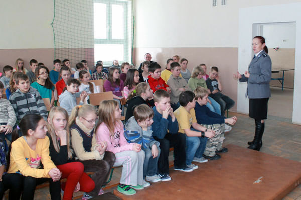 Pani Policjant w czasie spotkania skupiła się również na przeciwdziałaniu zachowaniom negatywnym, jakie najczęściej mają miejsce w szkole np. reagowanie złością, przekleństwa, popychanie, stalking . Dała dzieciom do zrozumienia, że takie zachowania jak stosowanie przemocy fizycznej, czy psychicznej w stosunku do kolegów i koleżanek jest karalne, gdyż każdy człowiek ma prawo do wolności i nienaruszalności cielesnej. Dzieci zrozumiały, że ich obowiązkiem jest panowanie nad emocjami i wybuchami złości. Zostały również przekonane, że człowiek ma prawo czuć się dobrze wszędzie i w każdym środowisku. Szczególną uwagę zwróciła na to, że dziecko ma zawsze możliwość szukania wsparcia i zainteresowania swoim problemem u osoby dorosłej.