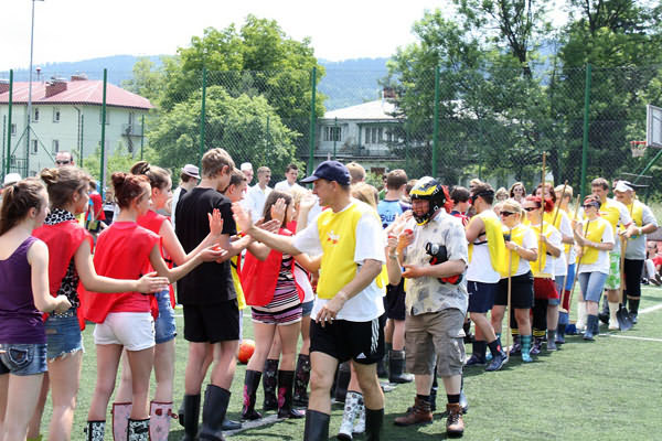 Następnie nadszedł czas na zabawy ruchowe i rozgrywki sportowe na Orliku. Niewątpliwie najwięcej emocji wzbudziła ogromna, dmuchana zjeżdżalnia zamówiona przez rodziców, która pojawiła się obok naszej szkoły specjalnie na tę okazję. Kolejki chętnych do skorzystania z tego obiektu nie miały końca, zaczynając od maluchów, a kończąc na uczniach klasy III gimnazjum.
