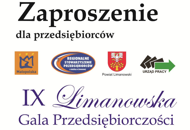 Zachęcamy firmy z terenu naszej gminy do uczestnictwa w konkursie organizowanym w ramach " Limanowskiej Gali Przedsiębiorczości". Już po raz dziewiąty Powiat Limanowski wraz z Regionalnym Stowarzyszeniem Przedsiębiorców z siedzibą w Limanowej jest organizatorem konkursu mającego na celu wspieranie przedsiębiorczości poprzez promocję firm osiągających najlepsze wyniki ekonomiczne z zachowaniem zasad etyki biznesu oraz osób, które swym działaniem szczególnie przyczyniają się do tworzenia sprzyjających warunków dla przedsiębiorczości jak i dla rozwoju lokalnej społeczności.