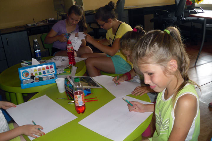 Przy dźwiękach gitary można było miło spędzić czas oraz nauczyć się nowych piosenek i zabaw. Dzieci z wielkim zaangażowaniem brały udział w warsztatach literacko-teatralnych. Mali aktorzy chętnie ćwiczyli przez całe wakacje swoje role i samodzielnie wykonali kukiełki oraz dekoracje do teatrzyku pt. "Miała babuleńka kozła rogatego".