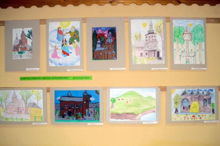 W czasie zajęć plastycznych dzieci wykonały prace do konkursu "Zabytki i ciekawe miejsca w Pisarzowej", które były wynikiem wycieczki zorganizowanej przez bibliotekę po Pisarzowej. Prace można było podziwiać podczas Misji Świętych i Obchodów Jubileuszu 300-lecia powstania Kościoła pw. św. Jana Ewangelisty w Pisarzowej. Składamy serdeczne podziękowania ks. proboszczowi Andrzejowi Bąkowi za pomoc i duże zainteresowanie wystawą prac plastycznych w kościele.