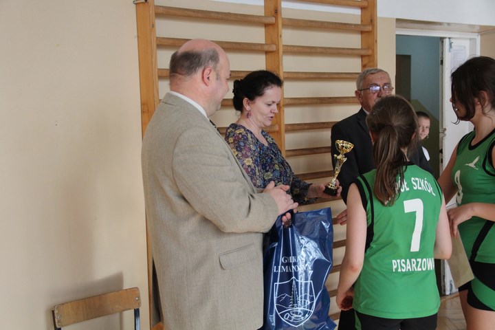 Nagrody i dyplomy wszystkim uczestnikom wręczyli: Z-ca Wójta Gminy Limanowa - Franciszek Bieda, Sekretarz Gminy – Marek Ziaja, oraz Dyrektor Zespołu Szkół w Pisarzowej - Magdalena Strzebońska.