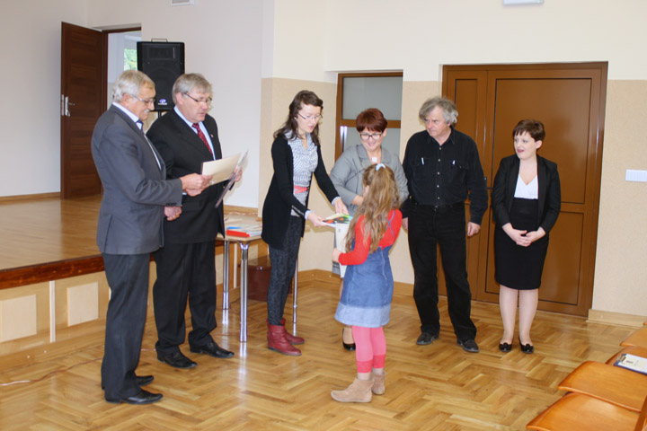 Zarówno wyróżnieni, jak i wszyscy uczestnicy otrzymali dyplomy oraz nagrody książkowe, które wręczali Zastępca Wójta - Władysław Bieda, Dyrektor Biblioteki - Jacenty Musiał, bibliotekarka z Kaniny - Maria Trzupek oraz jury.