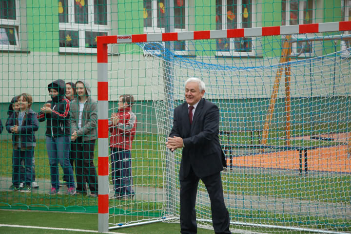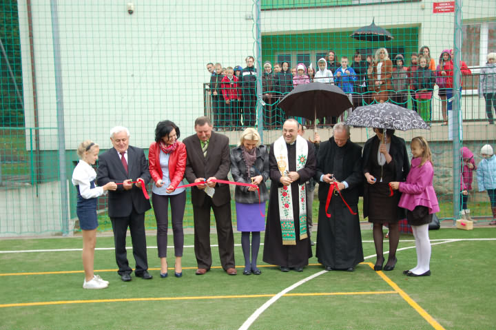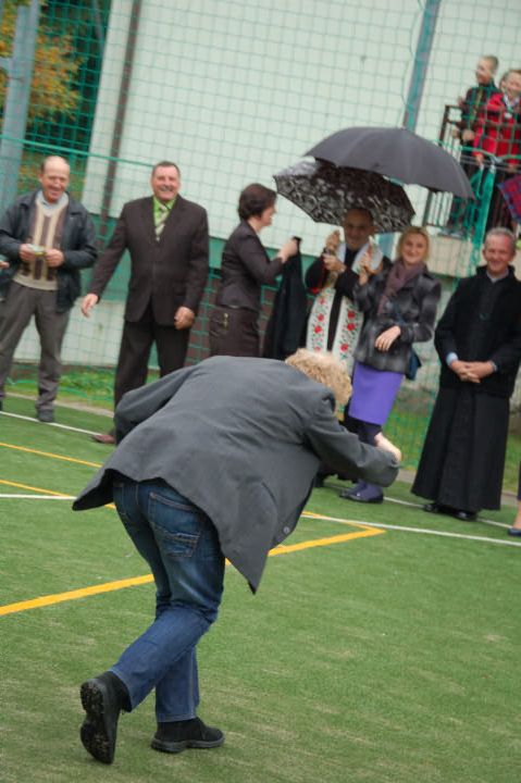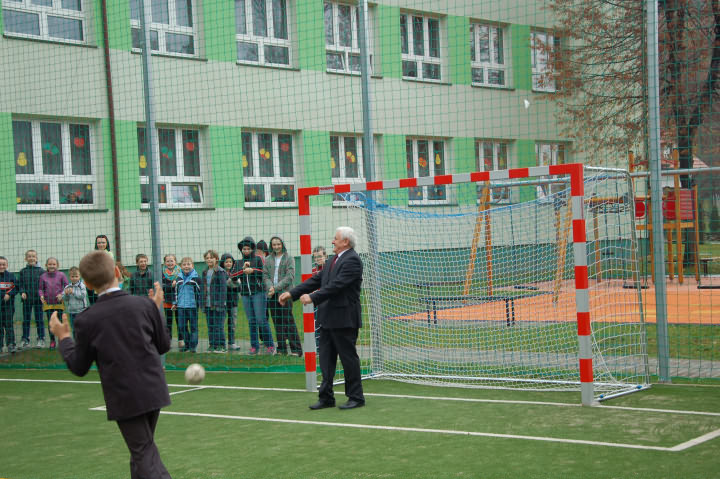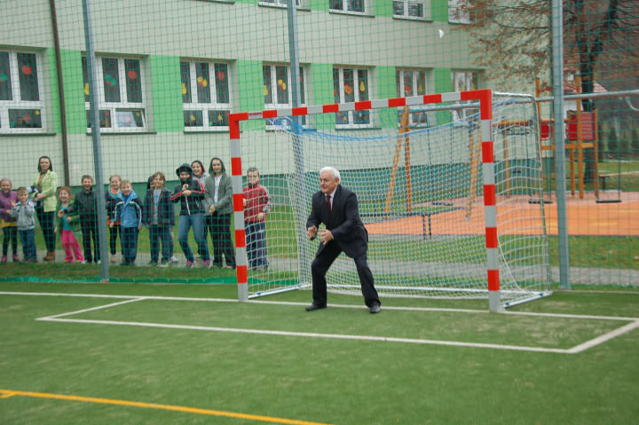 Goście korzystając z nadarzającej się okazji postanowili sprawdzić swoje umiejętności futbolowe. Po sportowych zmaganiach Rada Rodziców serdecznie podziękowała nauczycielom szkoły za trud nauczania oraz winszowała samych pomyślności z okazji Dnia Edukacji Narodowej. Gospodarze serdecznie podziękowali Wójtowi za realizacje tej inwestycji, która doskonale współgra z położonym obok placem zabaw.