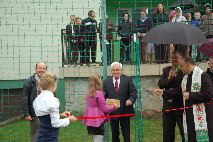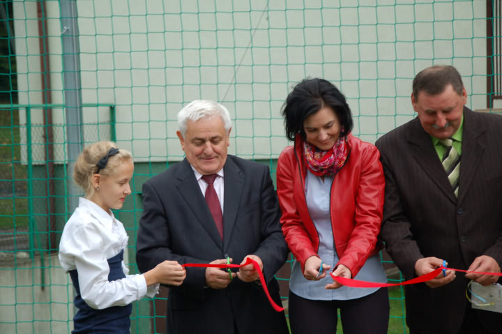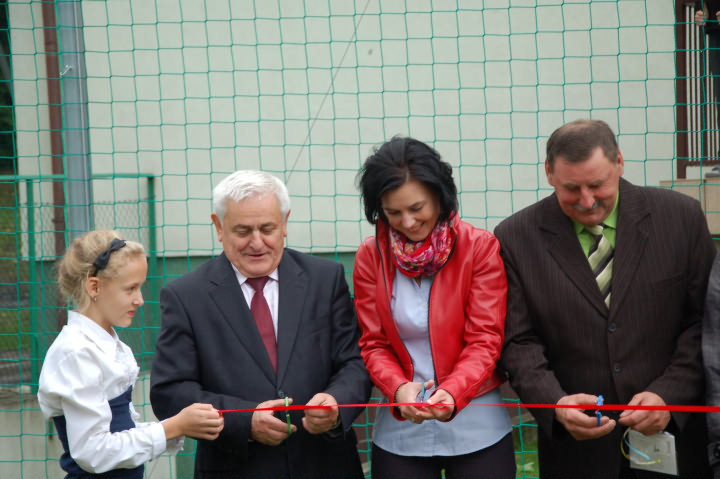 Uroczystego przecięcia symbolicznej wstęgi dokonał Wójt Gminy Limanowa Władysław Pazdan, Dyrektor Gminnego Zespołu Obsługi Szkół w Limanowej Edyta Król, Dyrektor Szkoły Podstawowej w Młynnem Bożena Golonka, sołtys Młynnego Leszek Twaróg oraz Przewodnicząca Rady Rodziców Aneta Matras.
