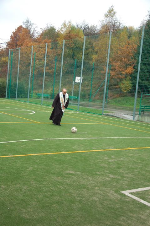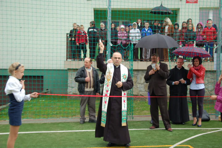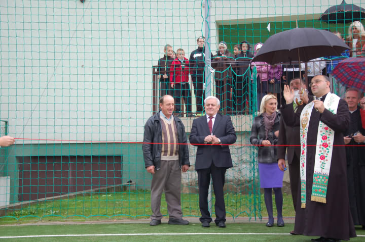 Przed poświęceniem odbyła się krótka akademia szkolna przygotowana przez najmłodszych mieszkańców Młynnego poświęcona rocznicy wyboru Polaka Karola Wojtyły na papieża. Poświęcenia boiska dokonał proboszcz Łososiny Górnej Stanisław Kowalik , któremu towarzyszył rektor kaplicy w Młynnem Stanisław Pietrzak.