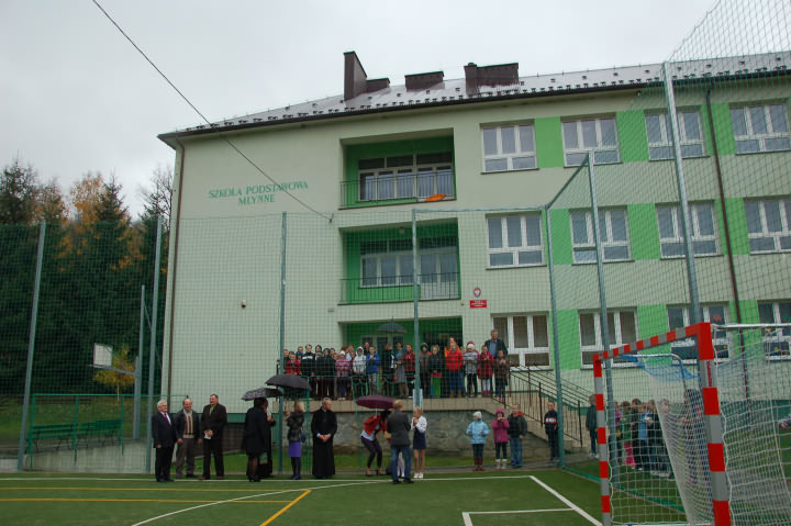 Dnia 16 października w Młynnem odbyły się uroczystości związanie z poświeceniem rozbudowanego boiska wielofunkcyjnego o sztucznej nawierzchni. Inwestycja ta kosztowała 160 tysięcy złotych i została wykonana ze środków własnych gminy i dofinansowaniu w wysokości 52 700,00 zł przez Ministra Sportu i Turystyki ze środków Funduszu Rozwoju Kultury Fizycznej w ramach Programu Rozwoju Szkolnej Infrastruktury Sportowej.