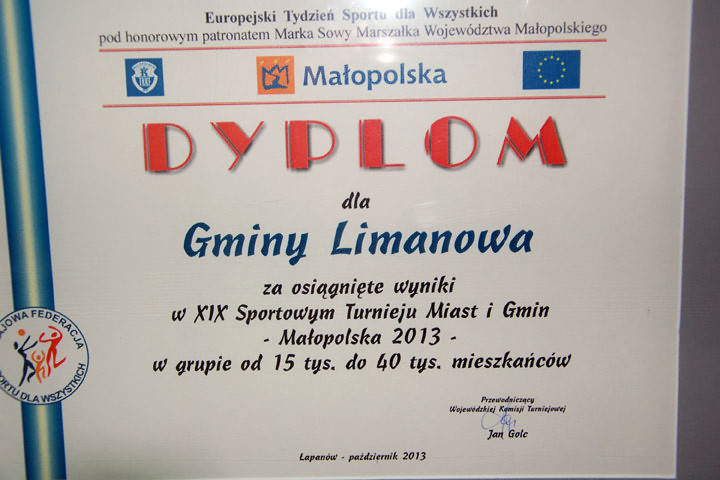 Również dnia 17 października w Łapanowie Wójt Gminy Limanowa odebrał wyróżnienie i podziękowanie za wybitny wkład w organizację XIX Sportowego Turnieju Miast i Gmin - Małopolska 2013, w ramach V Europejskiego Tygodnia Sportu dla Wszystkich.