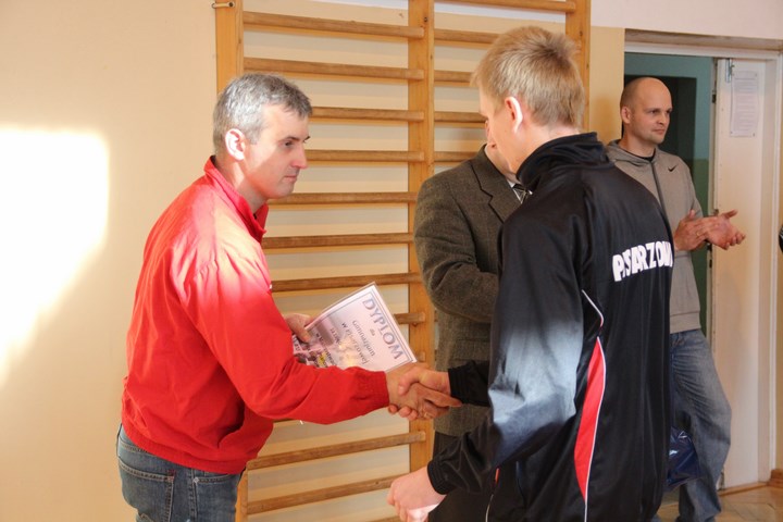 Wręczenia nagród i dyplomów dokonali: Marek Ziaja – Sekretarz Gminy i Łukasz Sukiennik – nauczyciel wychowania fizycznego w Pisarzowej.