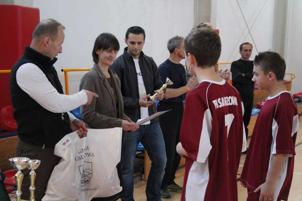 Wręczenia nagród i dyplomów dokonali: Wicedyrektor Zespołu Szkół w Pasierbcu - Urszula Nowak wspólnie z nauczycielami wychowania fizycznego - Markiem Golonką i Michałem Majka.Chłopcy ze Starej Wsi I będą reprezentować naszą gminę na zawodach powiatowych 9 stycznia 2014r. na hali sportowej przy ZSS nr 3 w Limanowej. Życzymy powodzenia!