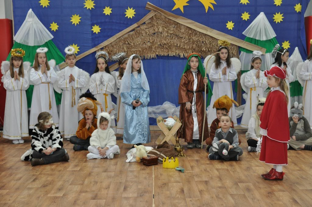 Kolejnym punktem programu były jasełka, w których wzięli udział uczniowie klas I –III SP oraz kilkoro dzieci z oddziału zerowego. Scenariusz jasełek został urozmaicony o nietypowe postacie i piękne pastorałki. W bożonarodzeniowej inscenizacji Bożą Dziecinę witali nie tylko aniołowie, pasterze i królowie, ale także dzieci, zwierzęta, bajkowe postacie i pory roku.