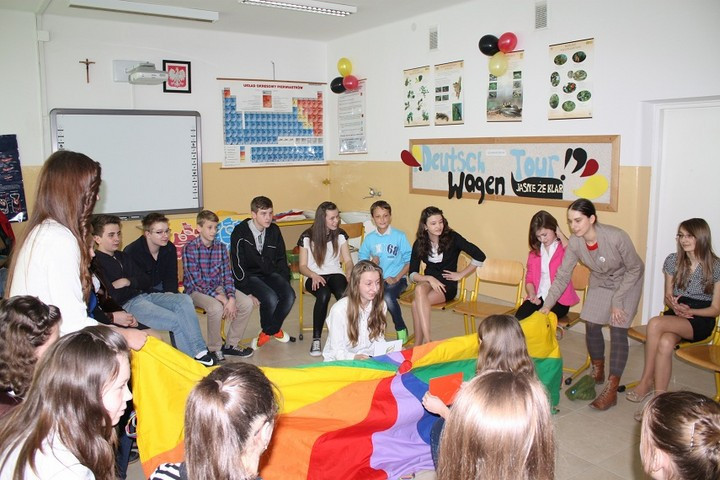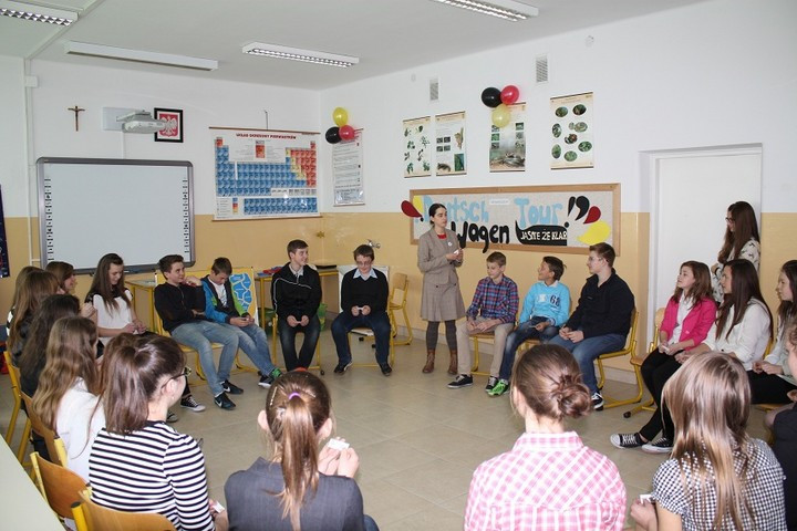 Dnia 25 marca br. w Zespole Szkół nr 1 w Męcinie gościł lektor języka niemieckiego z Instytutu Goethego z Krakowa. Lektor – Joanna Lay prowadziła zajęcia w trzech wybranych grupach: w klasie pierwszej SP, w klasie szóstej SP oraz w kl. I gimnazjum. Wszystko to w ramach projektu o niemieckiej nazwie Deutsch-Wagen-Tour.