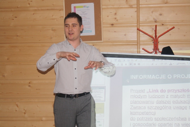 Spotkanie: „Link do przyszłości” otworzył Jacenty Musiał – Dyrektor Gminnej Biblioteki Publicznej w Starej Wsi, który przedstawił gościa i przywitał zebranych uczniów, przybyłych z nauczycielką ZS w Męcinie - mgr Zofią Pastuszak oraz studentką UP - Justyną Cieślik. Na spotkaniu obecna była również Teresa Frączek – bibliotekarka z Męciny oraz Maria Trzupek – pracująca w gminnej bibliotece w Kaninie. Przybyły gość okazał się niezwykle elokwentnym, energicznym i profesjonalistą.