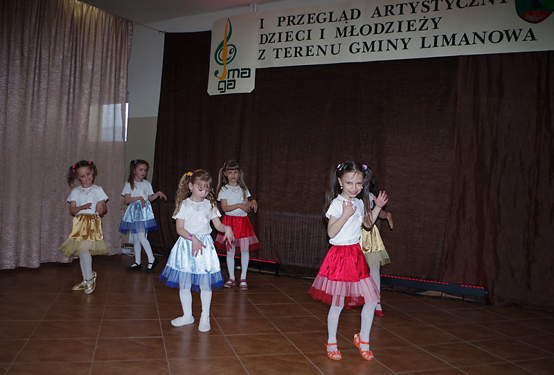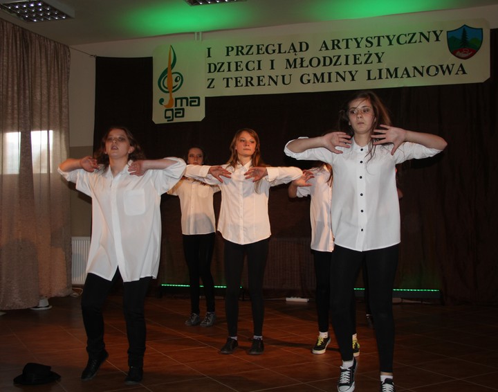 Dnia 11 kwietnia br. w świetlicy w Pisarzowej królował taniec nowoczesny. W rytm znanych przebojów zatańczyło 15 grup reprezentujących szkoły podstawowe i gimnazja z terenu gminy Limanowa : 6 grup wystąpiło w kat. kl.0-III SP, 6 w kat. kl.IV-VI SP i 3 grupy – w kat. gimnazjów. Konkurs tańca nowoczesnego odbył się w ramach I Przeglądu Artystycznego Dzieci i Młodzieży z terenu Gminy Limanowa „MaGa - Młodzi artyści Gminy atakują”.