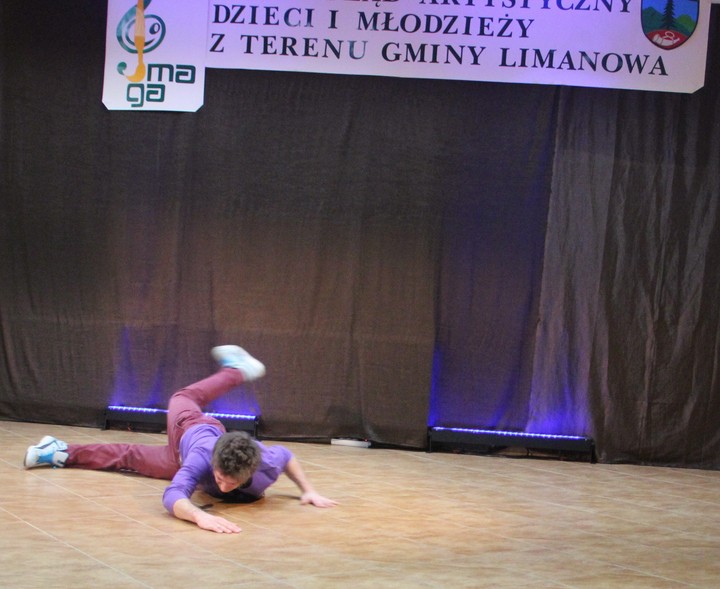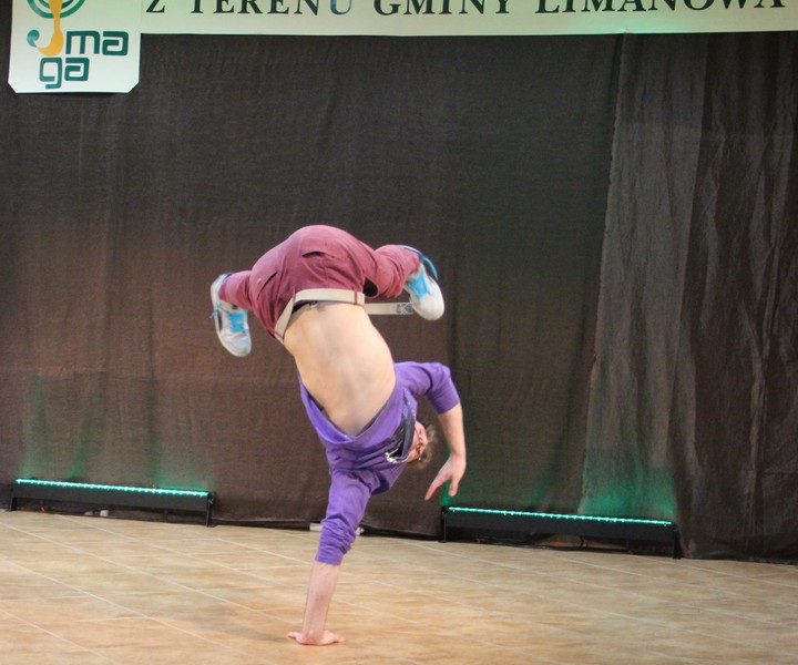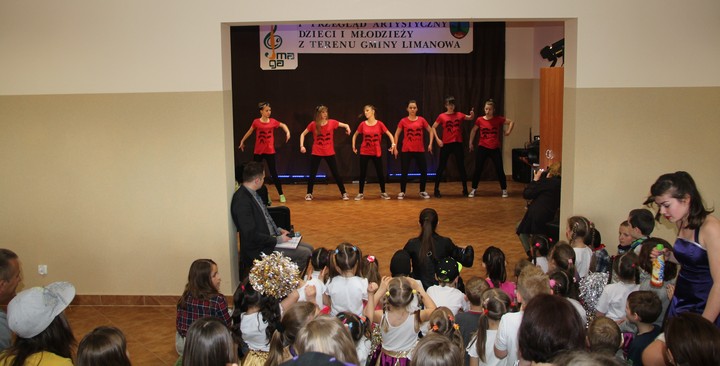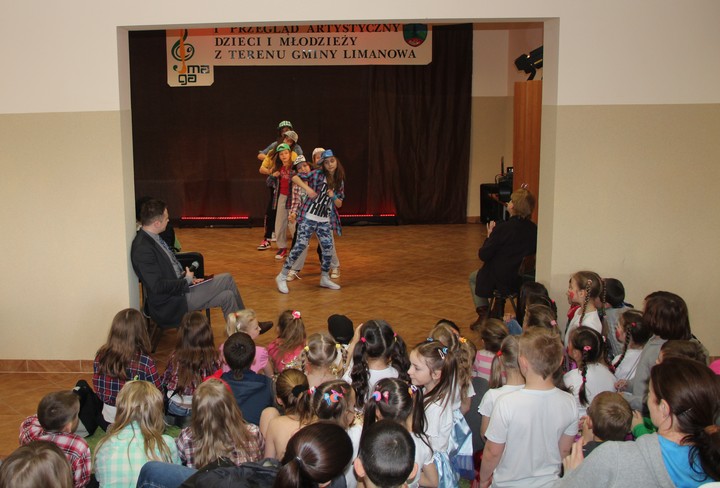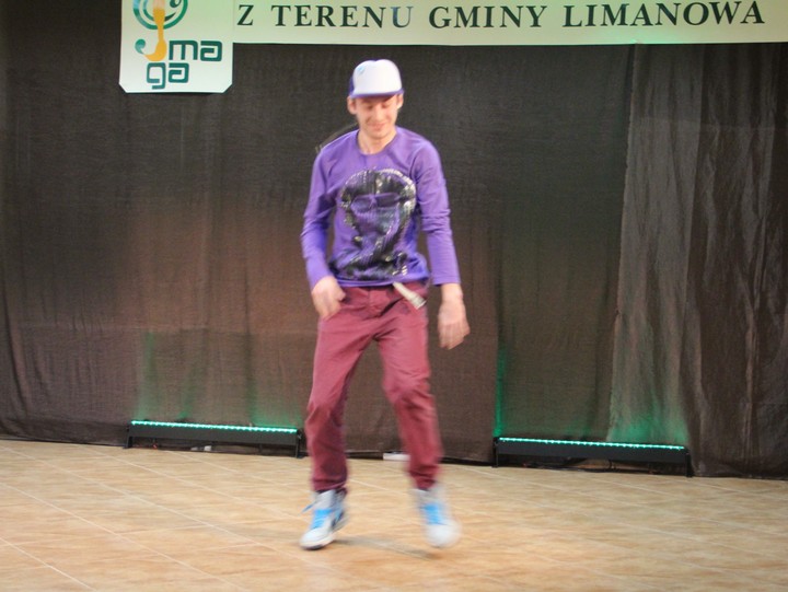 Występy rozpoczęły się od prezentacji tanecznych najmłodszych grup - dzieci z klas 0-III szkół podstawowych, po czym kolejno z umiejętności taneczne pokazały grupy z klas IV-VI szkół podstawowych oraz grupy gimnazjalne. Jednak jeszcze przed konkursowymi pokazami tańca, aby dodać dzieciom odwagi swe umiejętności z tańca break dance zaprezentował Wojciech Faron - członek Komisji oceniającej występy grup, w skład której wchodziły również : Ludmiła Krzyk – przewodnicząca Komisji /instruktor tańca i fitness/ oraz Kinga Górlińska-Leśniak z Urzędu Gminy Limanowa.