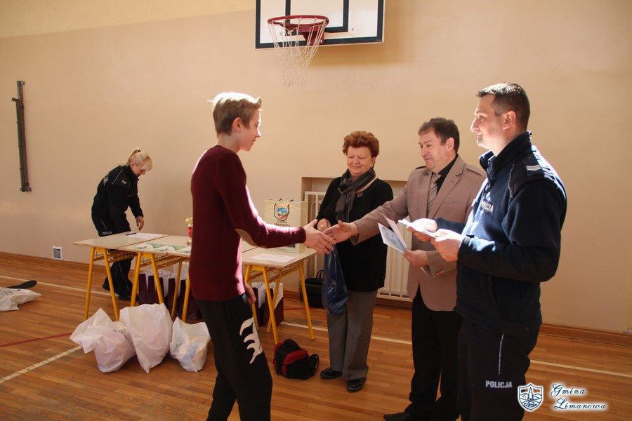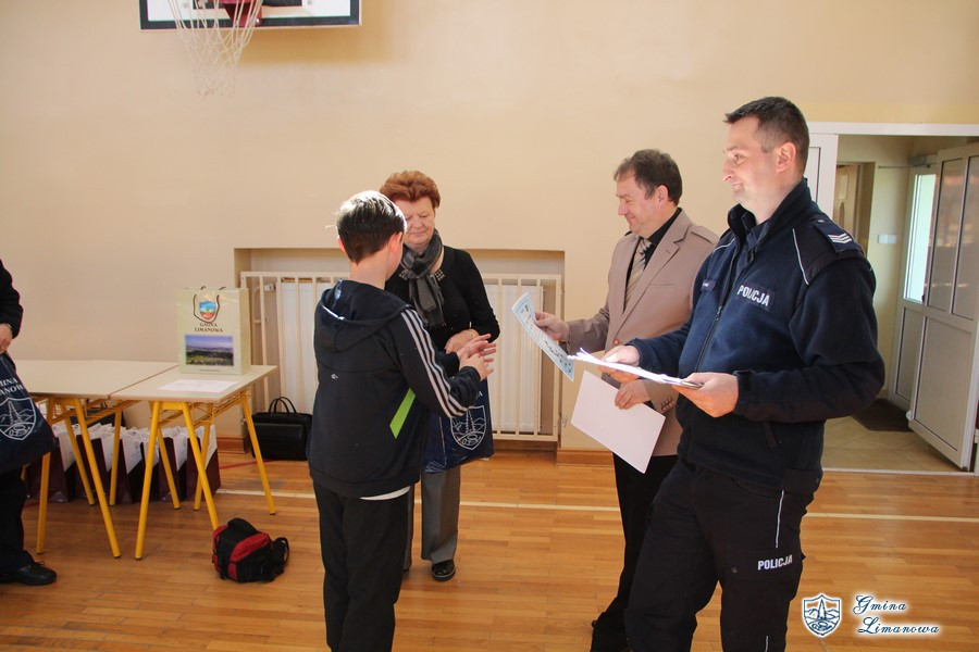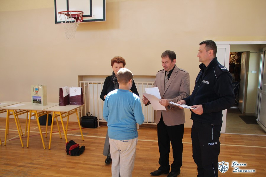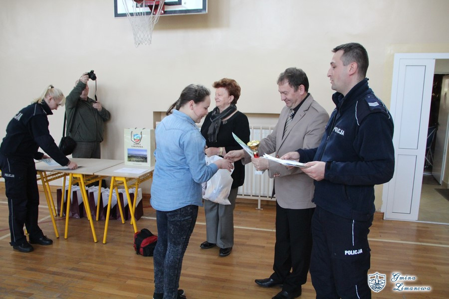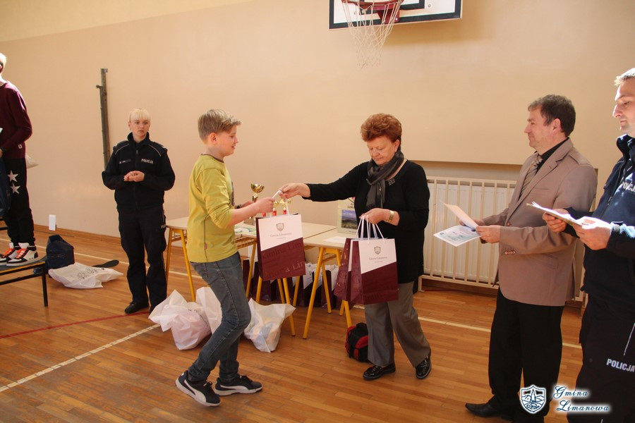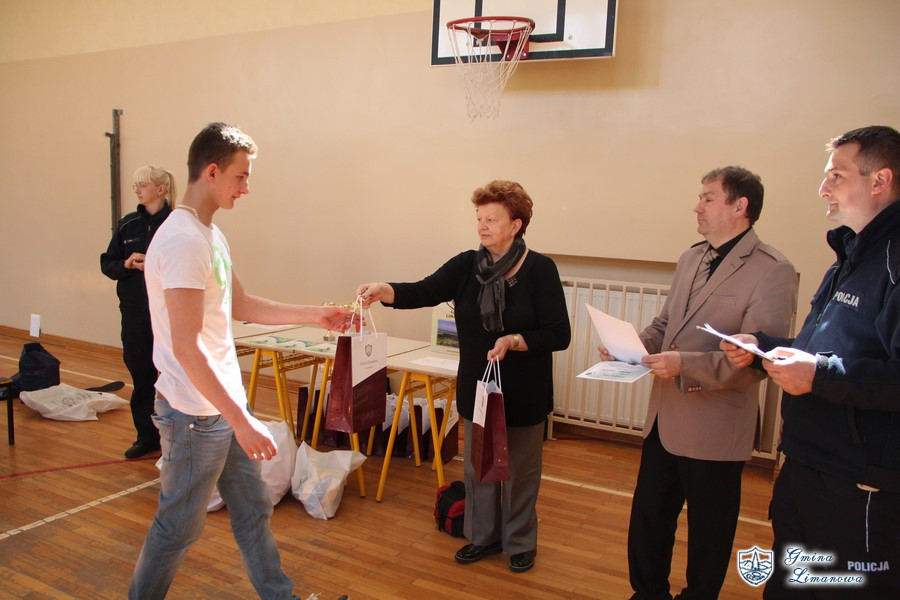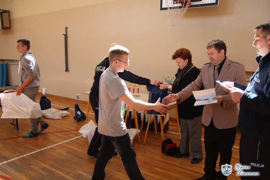 Wszystkie szkoły oraz uczestnicy turnieju otrzymali dyplomy oraz nagrody rzeczowe ufundowane przez Urząd Gminy Limanowa. Nagrody wręczył wice wójt gminy – Marian Mąka, Dyrektor Zespołu Szkół nr 1 w Męcinie - Maria Lupa, oraz sierż. szt. Henryk Sopata.