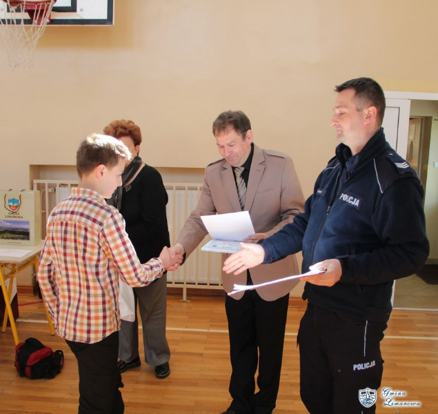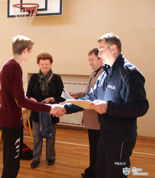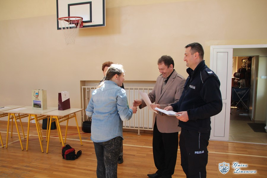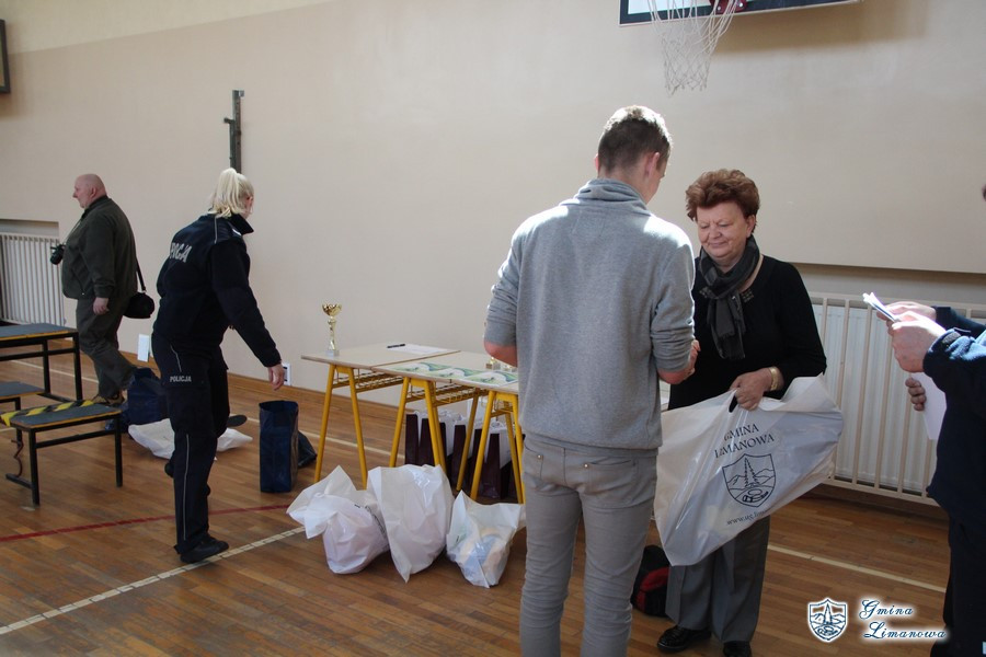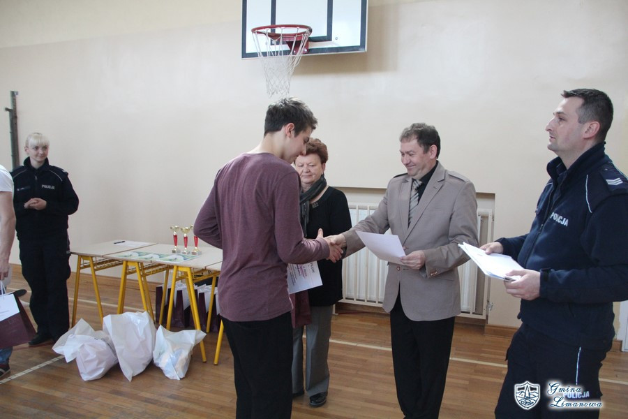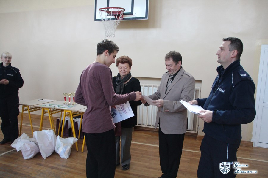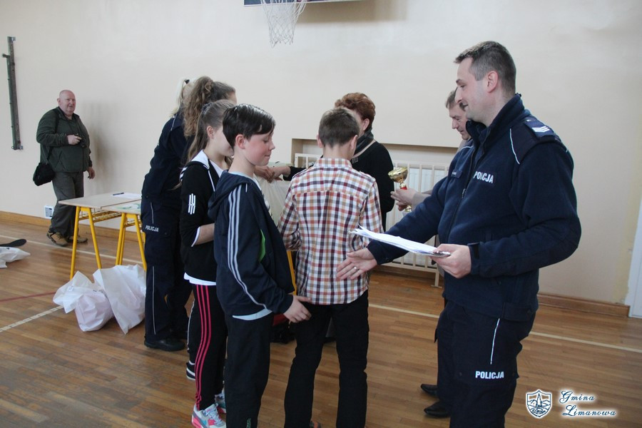 Wszystkie szkoły oraz uczestnicy turnieju otrzymali dyplomy oraz nagrody rzeczowe ufundowane przez Urząd Gminy Limanowa. Nagrody wręczył wice wójt gminy – Marian Mąka, Dyrektor Zespołu Szkół nr 1 w Męcinie - Maria Lupa, oraz sierż. szt. Henryk Sopata.